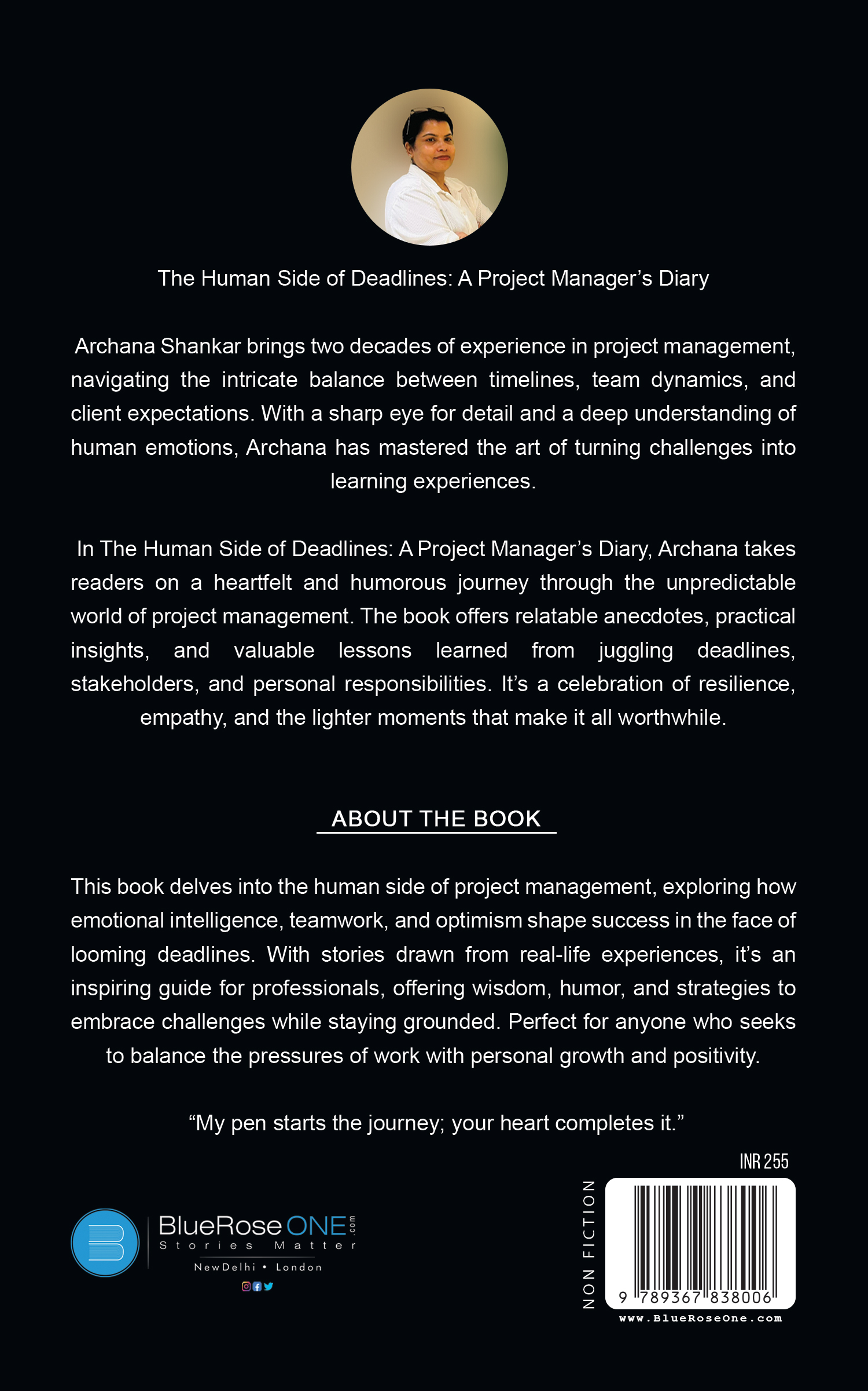 The Human Side of Deadlines explores the emotional, psychological, and practical challenges that come with time-bound work. In today’s fast-paced world, deadlines can trigger stress, anxiety, and burnout—but behind every deadline are real people juggling responsibilities, creativity, and performance pressures. Drawing on real-life experiences and expert insights, this book delves into how deadlines shape personal and professional lives, offering practical strategies to manage stress, maintain motivation, and strike a balance between urgency and well-being. Through engaging stories and thoughtful advice, Archana Shankar highlights the importance of empathy, effective communication, and flexibility in deadline-driven environments. Whether you’re a project manager, entrepreneur, or simply navigating daily pressures, this book will help you rethink time constraints and foster a healthier, people-centric work culture.